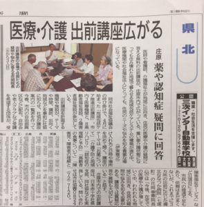当院の出前講座の活動が中国新聞の地方版に掲載されました。