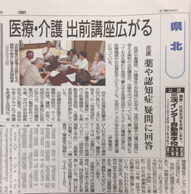ブログ一覧へ戻る当院の出前講座の活動が中国新聞の地方版に掲載されました。